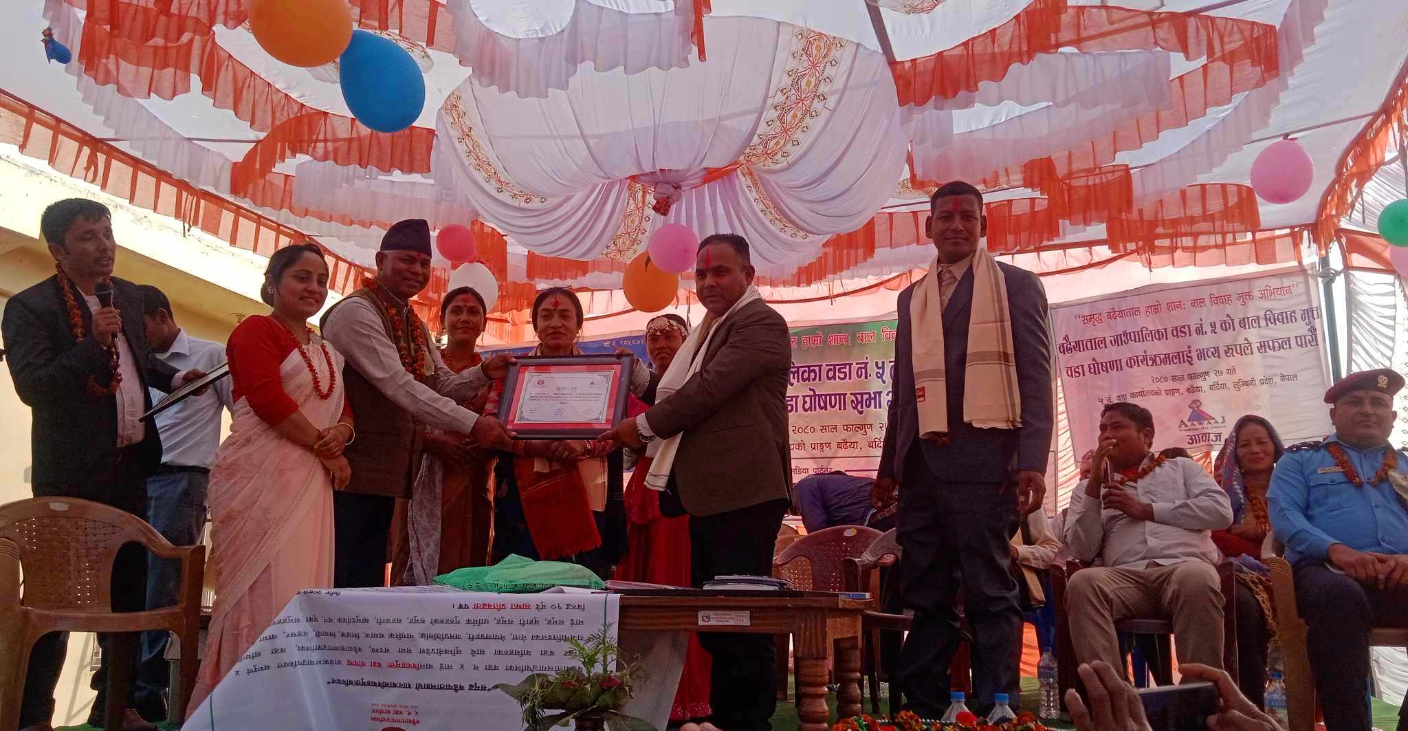 बालविवाह बिरुद्ध काम गर्ने गैरसरकारी संघ संस्थाको साझदारीमा र बिभिन्न आमा समुह युवा क्लव, भ्वाईस समुह लगायतको समन्वयमा बालविवाह मुक्त वडा घोषणा गरीएको हो । घोषणा सभामा बिभिन्न सस्कृति झल्किने बाजागाजा ¥याली झाँकी समेत गरीएको थियो । साथै अभियानमा सहयोग गर्ने नागरिक समाज, समुह, संघ स्थालाई सम्मान पत्र प्रदान गरिएको थियो भने साझेदार सस्था र पालिकाका जनप्रतिनिधि कर्मचारीहरुलाई मायाँको चिनो र कदर पत्र प्रदान गरिएको थियो ।