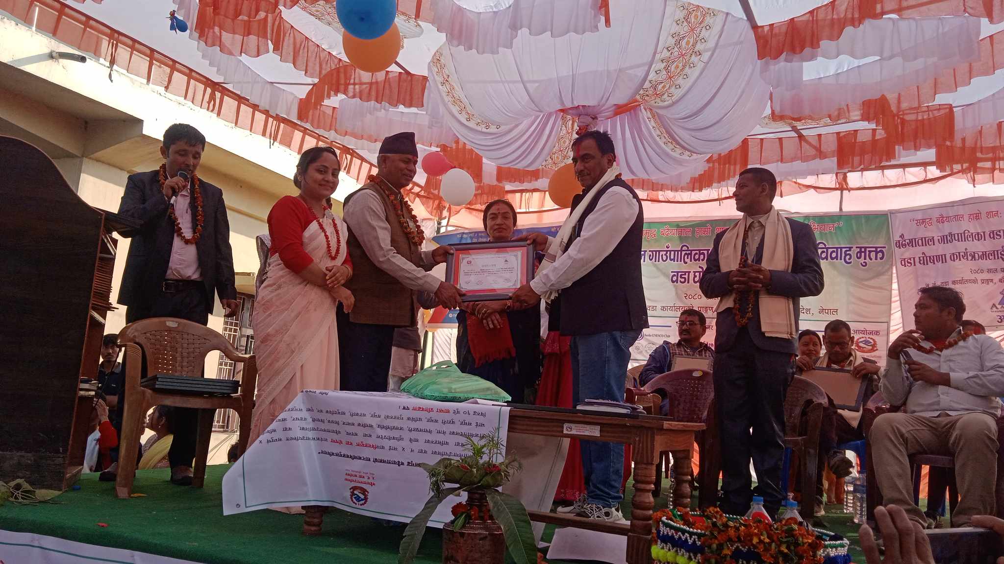 वालबिवाह मुक्त वडा घोषणा कार्यक्रमको प्रतिवेदन प्रस्तुत गर्दै ५ नम्वर वडा अध्यक्ष तुलाराम चौधरीले हामी बालविवाह प्रति सचेत छौं, हामीलाई बाल विवाह स्वीकार्य छैन, बालविवाहको निम्तोलाई स्वीकार गर्दैनौ, हामी बालअधिकारको सम्मान गर्दछौ, बढैयातालको ५नम्बर वडालाई बालविवाह रहित बनाउन प्रतिबद्ध छौं, बालविवाह गर्ने गराउने लाई कानुन बमोजिम कार्वाहीका लागि पहल गर्ने छौ, विवाह गर्नु पुर्व वडा कार्यालयको अनुमति पत्र लिएर मात्र गर्ने गराउने एक्यबद्धता जनाउदै वडा नम्बर ५ लाई बालविवाह मुक्त वडा भएको घोषण प्रतिबद्धता ५नम्वर वडाका वडाअध्यक्ष तुलाराम चौधरीले प्रस्तु गर्नु भयो ।