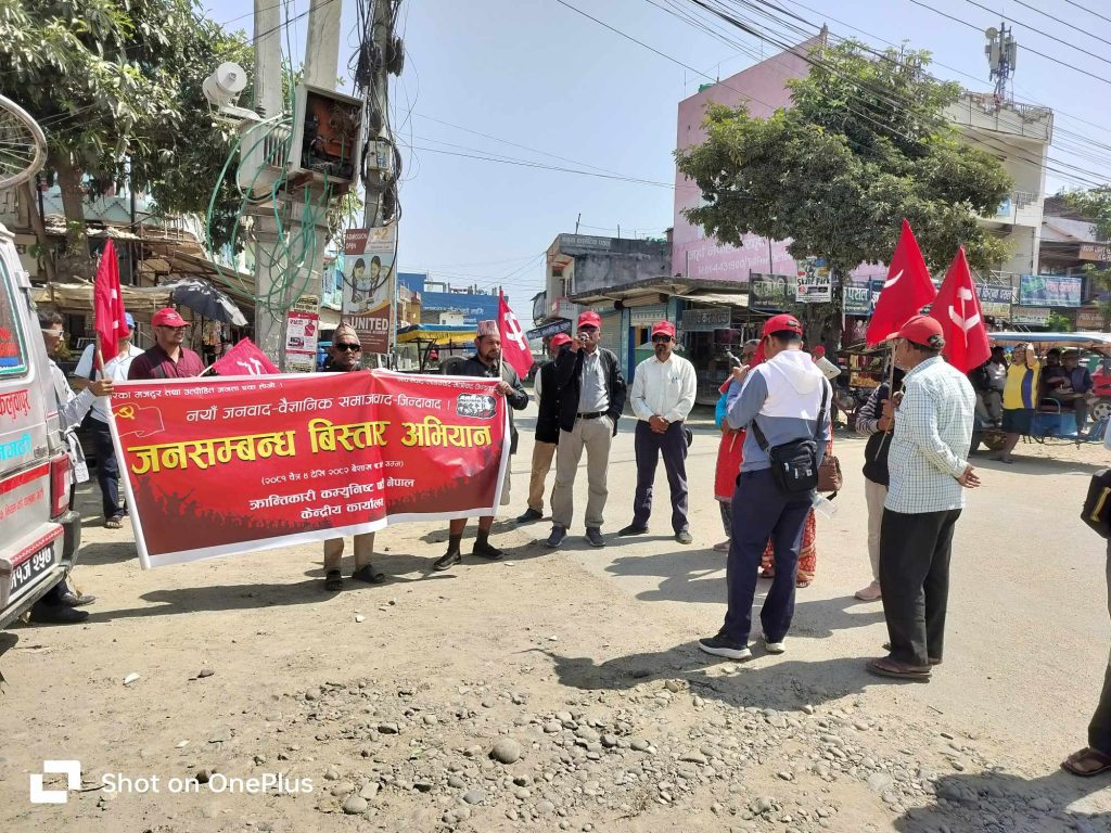 क्रान्तिकारी कम्युनिष्ट पार्टी नेपालले देशव्यापी जनसम्बन्ध विस्तार अभियान अन्तर्गत बर्दियाको बाँसगढीमा कोणसभा सम्पन्न गरेको छ । मोहन वैद्य ‘किरण’ नेतृत्वको उक्त पार्टीले जनतासँगको सम्बन्ध मजबुत बनाउन तथा संगठनलाई सशक्त बनाउन अभियान थालेको हो । पार्टीका स्थायी कमिटी सदस्य कृष्ण पौडेलका अनुसार एकता महाधिवेशनबाट पारित राजनीतिक कार्यदिशालाई जनताबीच पुर्याउने उद्देश्यले अभियान सञ्चालन गरिएको हो । उहाँका अनुसार शिक्षा, स्वास्थ्य र सञ्चार क्षेत्रको राष्ट्रियकरण आवश्यक रहेको पार्टीको धारणा छ । यस अभियान चैत ४ गतेदेखि सुरु भई आगामी बैशाख १८ गतेसम्म सञ्चालन हुने जनाइएको छ । चार टोली बनाएर सञ्चालन गरिएको अभियान अन्तर्गत कञ्चनपुर, कैलाली हुँदै आएको टोलीले बाँसगढीमा कोणसभा सम्पन्न गरेको हो ।